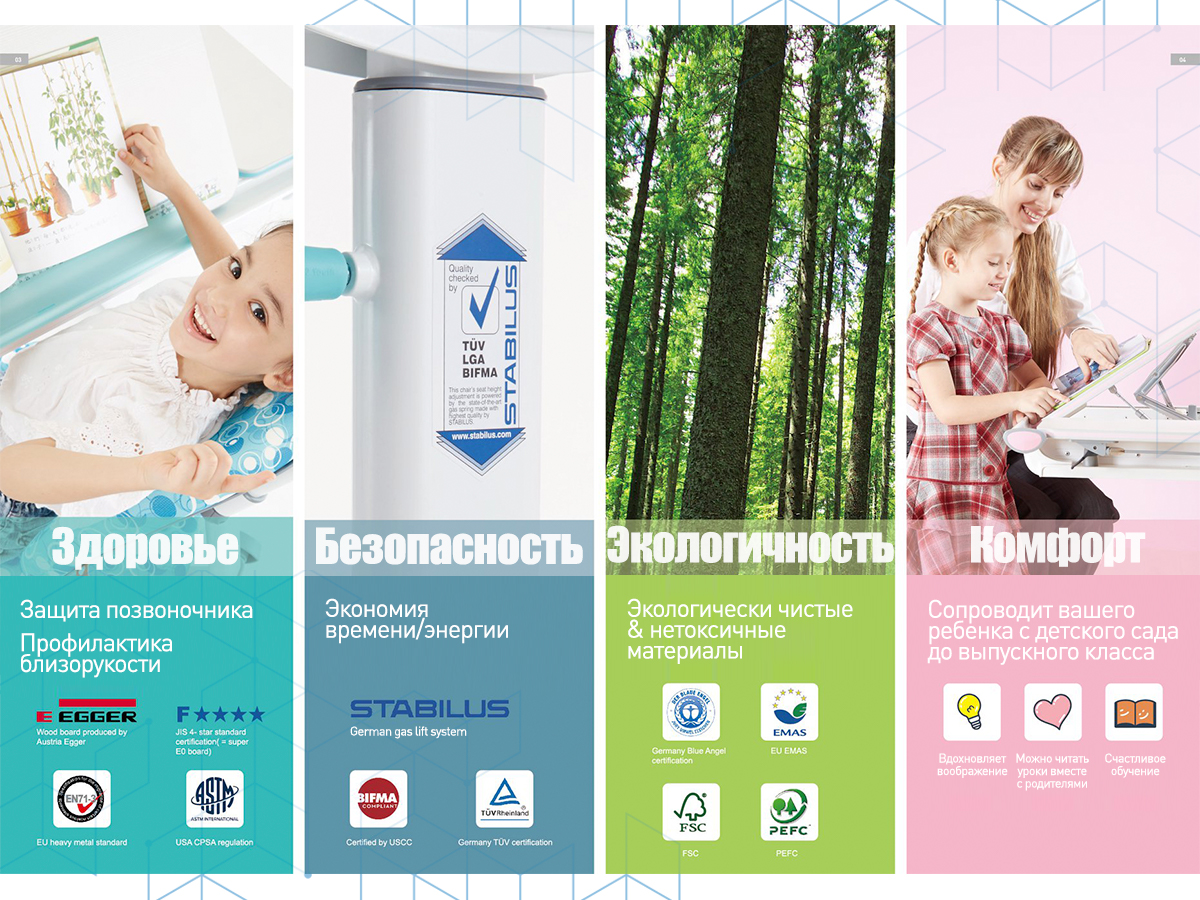 Ego - прекрасный образец заботы о детском здоровье. Основной упор создатели кресла сделали на формирование и поддержание правильной осанки и снятие усталости с мышц спины и таза. Благодаря двойной анатомической спинке уникальной формы, ребёнок не сможет ёрзать и принимать неестественные положения, что снижает риск каких-либо деформаций и микротравм. Таким образом, снижается угроза формирования серьёзных хронических заболеваний, как сколиоз или остеохондроз.